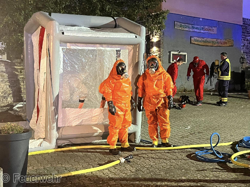 In der Ortslage Trarbach kam es zu einem Gefahrstoffeinsatz. Grund hierfür war eine undichte Chlorgasflasche in einem Raum der Moseltherme. Durch den Gefahrstoffzug wurden Messungen durchgeführt und die undichte Flasche verschlossen. Zum Glück konnte keine relevante Konzentration des Gases nach außen und in die Kanalisation entweichen.