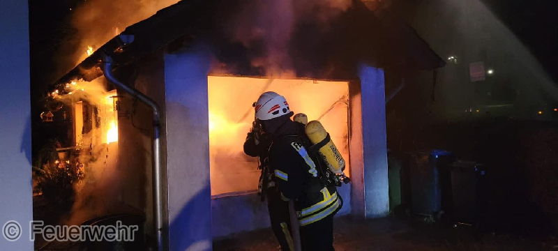 Zu einem gemeldeten Garagenbrand wurden die Wehren in die Ortslage Bausendorf alarmiert. Bereits auf der Anfahrt konnte von den Einsatzkräften ein heller Feuerschein wahrgenommen werden. Vor Ort brannte eine Garage in voller Ausdehnung. Auch ein in der Garage abgestellter PKW fiel den Flammen zum Opfer. Umgehend wurde von außen mit der Brandbekämpfung begonnen. Im weiteren Einsatzverlauf wurde zum eindämmen der Flammen im inneren der Garage Löschschaum eingesetzt. Eine Brandausbreitung auf das daneben stehende Wohnhaus konnte verhindert werden. Verletzt wurde niemand.