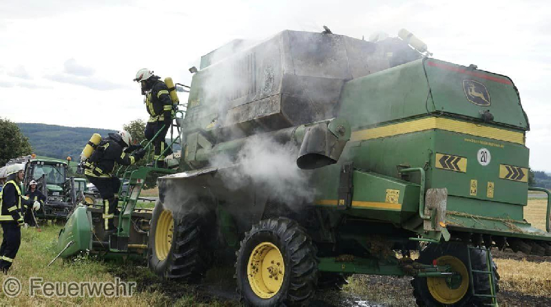 In der Ortslage Lötzbeuren kam es bei Erntearbeiten zum Brand eines Mähdreschers. Durch das beherzte Eingreifen des Mähdrescherfahrers und anwesenden Landwirten konnte eine Ausbreitung auf das Feld verhindert werden. Unter Atemschutz konnte der Mähdrescher durch mehrere Strahlrohre abgelöscht werden. Außerdem wurden auslaufende Betriebsstoffe aufgefangen.