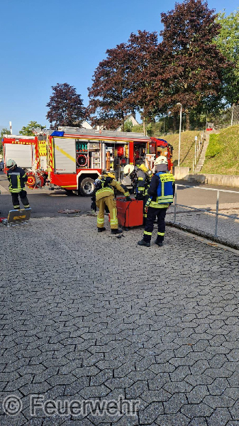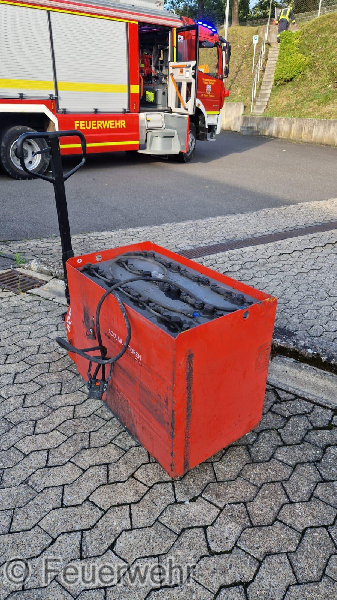 In einem Gewerbebetrieb kam es zu einem Batteriebrand eines Gabelstaplers. Bei Ankunft der Feuerwehr befand sich die Batterie schon außerhalb des Gebäudes. Durch die Feuerwehr wurde die Batterie abgelöscht und in eine Box verbracht. Anschließend wurde das Gebäude mittels Lüfter freigeblasen.