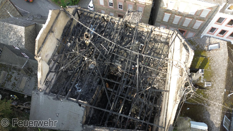 Mit Hilfe der Drohne der Technischen Einsatzleitung wurde das Gebäude immer wieder auf Glutnester oder offene Flammen kontrolliert. Es wurde nach einer weiteren Begutachtung entschlossen das Gebäude mit Schaum zu fluten um die Glutnester zu ersticken. Gegen späten Abend konnte dann schließlich Feuer aus gemeldet werden. Es wurde anschließend eine Brandwache bis in die frühen Morgenstunden durchgeführt.